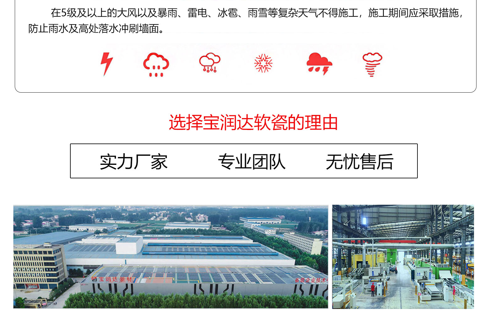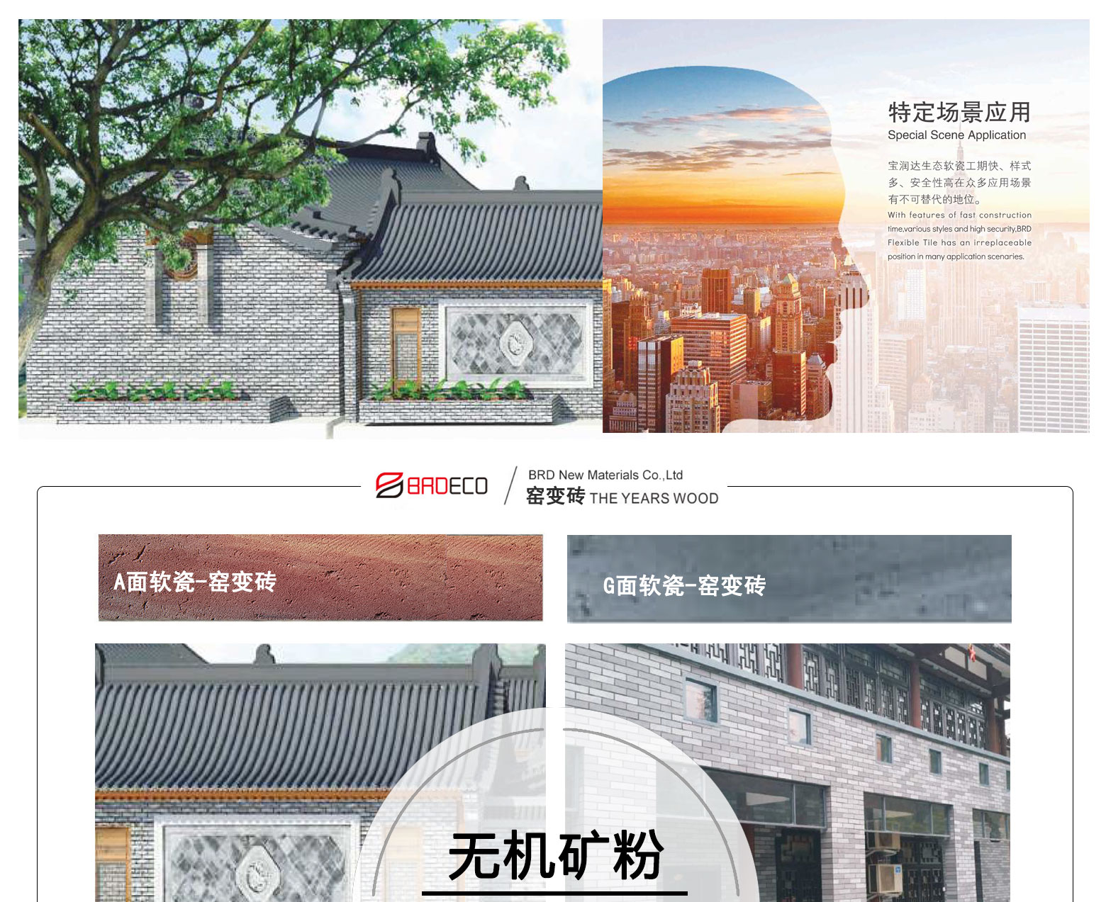 寶潤達外墻軟瓷磚:具有安全環保、抗震防裂、耐火防凍、拒水透氣、耐酸耐堿等優良特性,表現力豐富,是良好的室內外建筑飾面材料